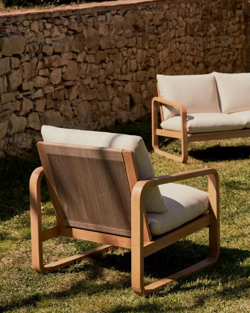 - Inkl. Sitz- und Rückenkissen mit Bezug aus Stoff in beige