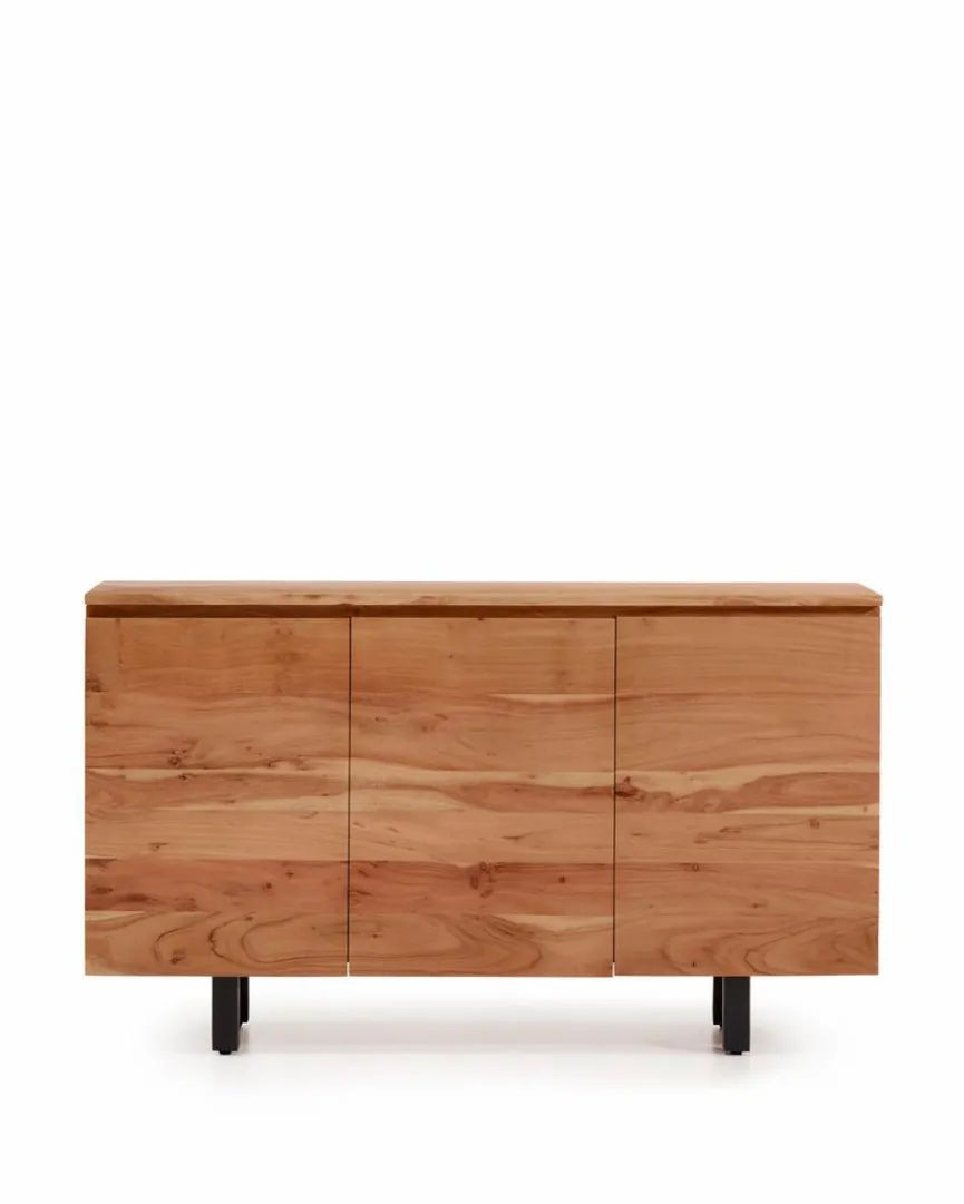 Massive, gebleichte Akazie verleiht dem Sideboard Uxue der Marke Kave Home eine ausgesprochen geschmackvolle Optik. Mit diesem Look erzeugt die Kommode in Räumlichkeiten unterschiedlichster Art ein ebenso behagliches wie ästhetisches Ambiente. Auch die schicken Metallfüße lassen das Sideboard Uxue in Ihrem Zuhause zu einem echten Blickfänger avancieren.