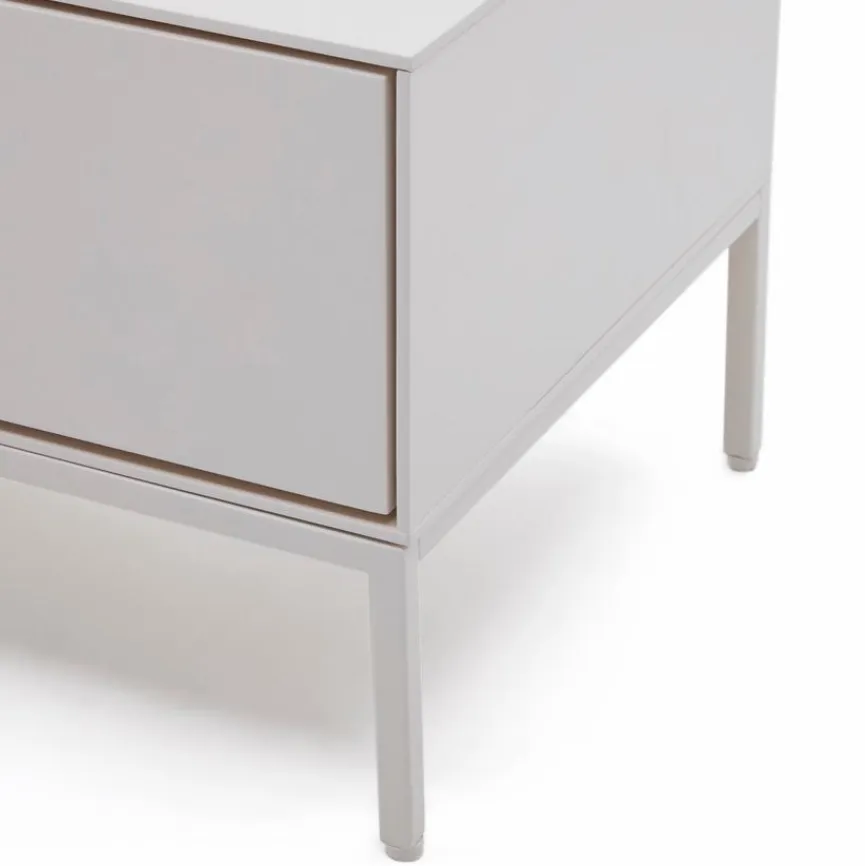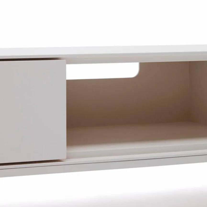 Das TV-Lowboard Vedrana von Kave Home ist eine famose Wahl für modern eingerichtete Räume. Lackierte Oberflächen bringen die schnörkellose Formgebung dieses TV-Unterschranks exzellent zur Geltung. Ein schlankes Gestell verleiht dem Möbel einen Look, der Leichtigkeit vermittelt. Ausgestattet ist das grifflos gestaltete TV-Lowboard Vedrana mit einem Push-to-open-System.