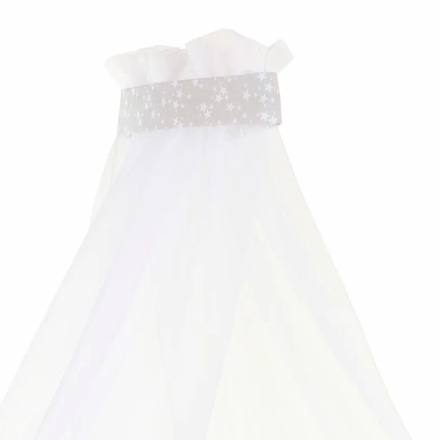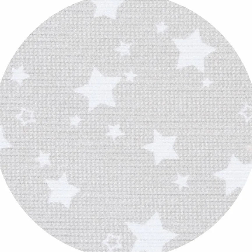 - Himmel in weiß, Bordüre aus Stoff in perlgrau mit Sternen in weiß