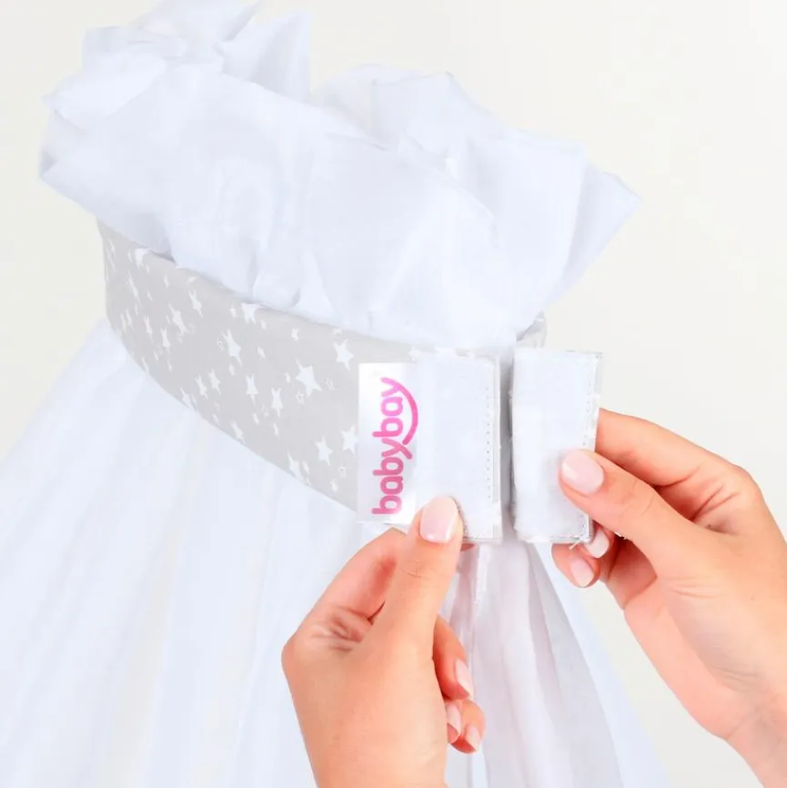 - Kann nur zusammen mit optional gegen Mehrpreis erhältlicher Himmelstange babybay am Anstellbett angebracht werden