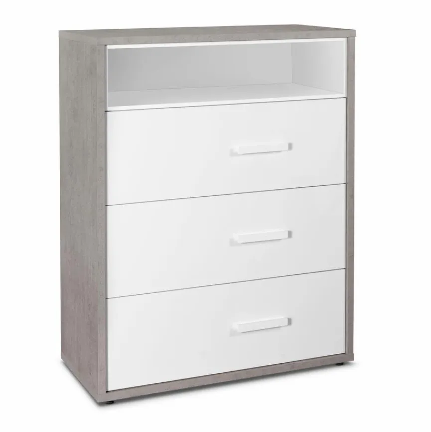 In der zweifarbigen Kommode Mipiace sind die privaten Gegenstände der jungen Erwachsenen sicher aufgehoben. Ausreichend Stauraum ist in dem offenen Fach und in den drei Schubladen vorhanden. Viele andere Möbelstücke und Textilien wie Teppiche und Gardinen können mit der modernen Kommode Mipiace kombiniert werden.