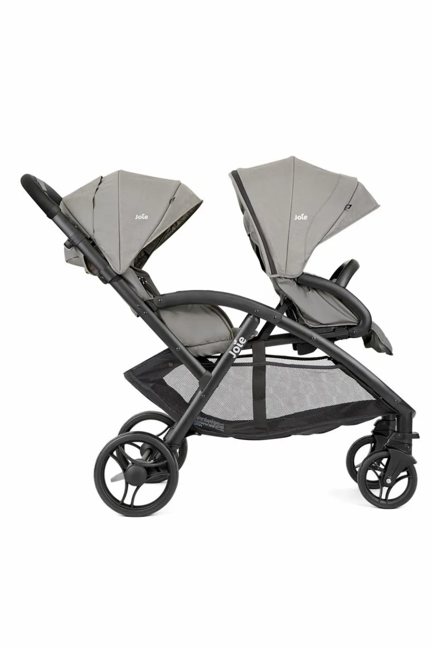 Der schmucke Zwillingsbuggy Evalite Duo Pebble von Joie bringt viele moderne Features mit. Dazu zählen zum Beispiel der Fünf-Punkt-Sicherheitsgurt mit Soft-Touch-Polsterung, schwenk- und feststellbare Vorderräder, die 4-Rad-Einzelfederung sowie eine leicht zu bedienende One-Touch-Bremse. Mit einem großen Sonnenverdeck, verstellbaren Rückenlehnen und einem gepolsterten Spielbügel ausgestattet, sorgt der Zwillingsbuggy Evalite Duo Pebble außerdem für ein umfassendes Wohlfühlgefühl bei Ihren Jüngsten.