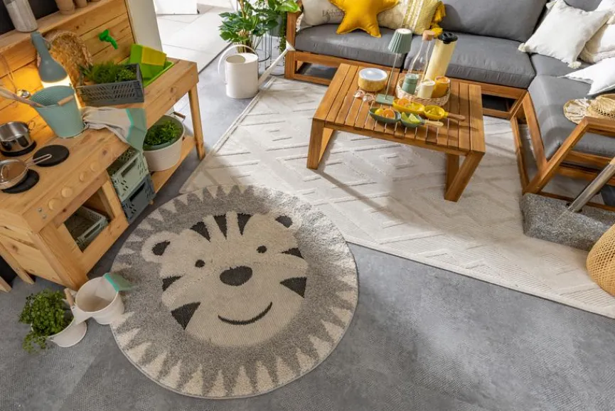 Der schicke Kinderteppich Wildlife Ø 120 cm besticht durch sein fröhliches Design und sorgt als textile Komponente für Gemütlichkeit. Auf dem weichen, wärmenden Kinderzimmerteppich können Ihre Kleinen eine Pause einlegen und beispielsweise ein Buch ansehen. Außerdem schützt der strapazierfähige, in- und outdoorgeeignete Kinderteppich Wildlife Ø 120 cm empfindliche Fußböden.