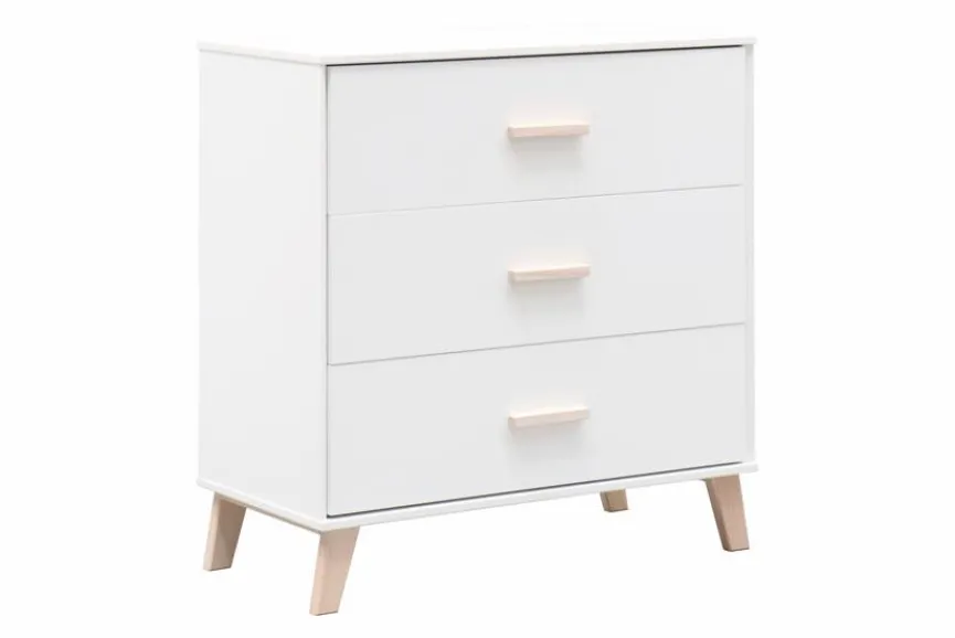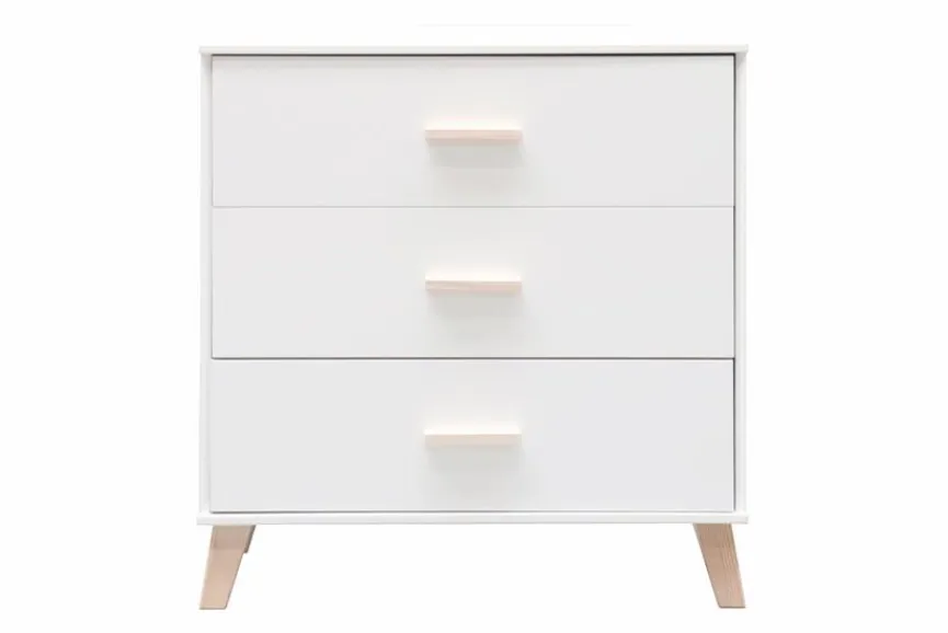Die Kommode Tower ist eine ebenso geschmackvolle wie praktische Ergänzung für die Einrichtung Ihres Zuhauses. Vor allem die Absetzung aus massiver und klar lackierter Kiefer und die leicht abgespreizten Beine prägen ihren charmanten Look. In den drei Schubladen der Kommode Tower finden zudem unterschiedlichste Gegenstände sinnvoll sortiert ihren Platz.