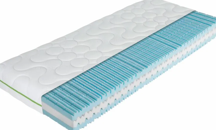 - Punktelastischer 7-Zonen-Kaltschaumkern mit Querbelüftung, Beckenkomfortzone, Schulterkomfortzone, Lordosestütze, Kopf- und Fußzone