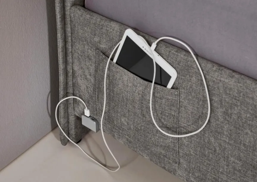 - Inkl. Kopfteil mit umlaufender Biese und 2 Betttaschen