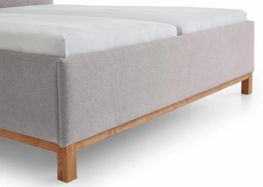- Bezug aus Stoff in silver, Gestell aus massiver Esche eichefarbig lackiert