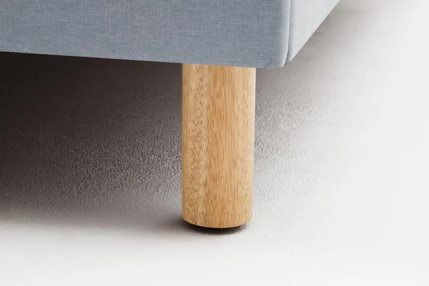 - Bettgestell aus Holzwerkstoff (Spanplatte), Füße aus massiver Eiche