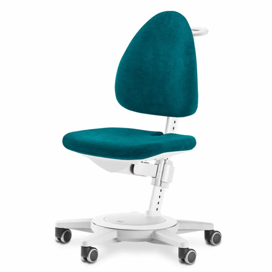 - Pendelnd gelagerte Rückenlehne, Höhe über Rastermechanik verstellbar, mit Universalrollen die für Hart- und Teppichboden geeignet sind
