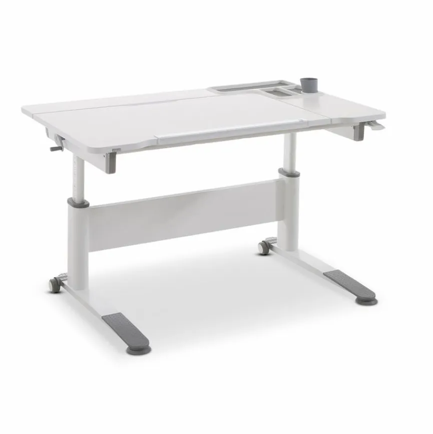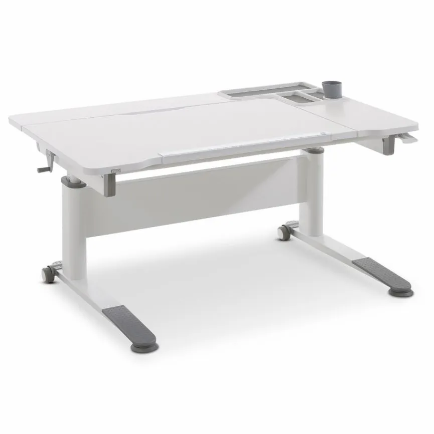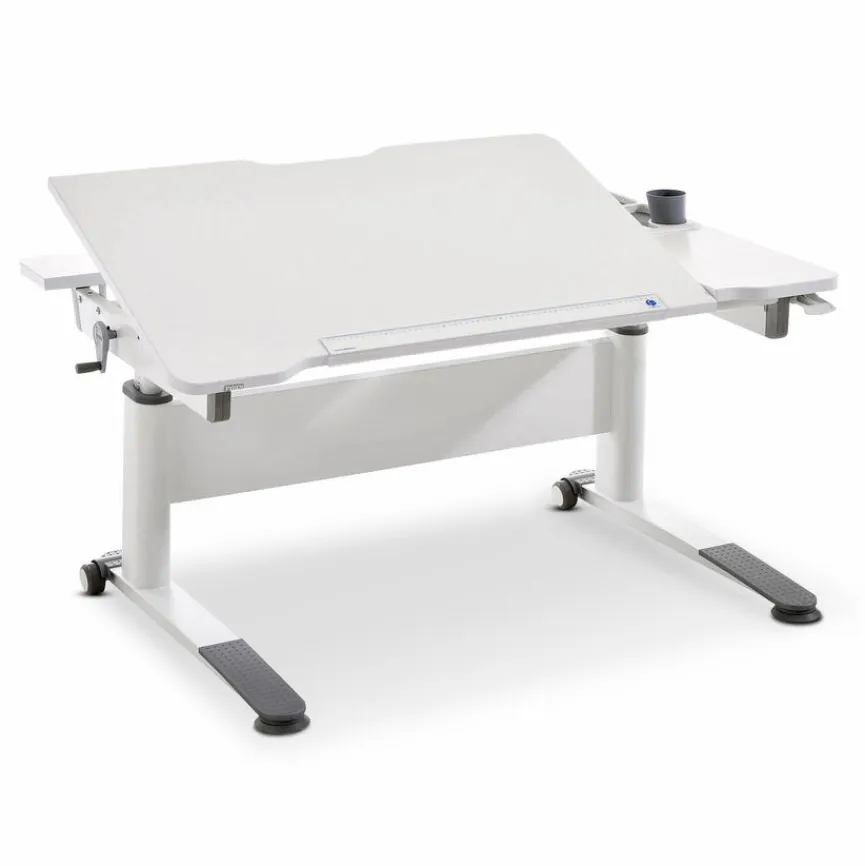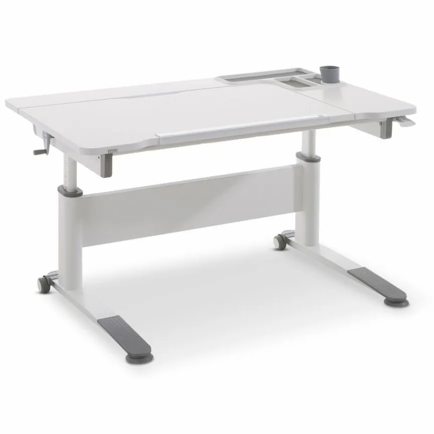 - Schreibtisch höhenverstellbar durch Kurbel, Schrägstellung der Tischplatte durch 2 hochwertige Gasdruckfedern per leichtem Hebeldruck
