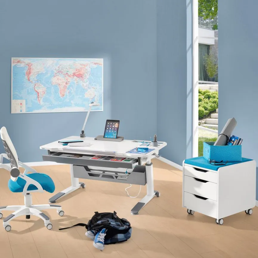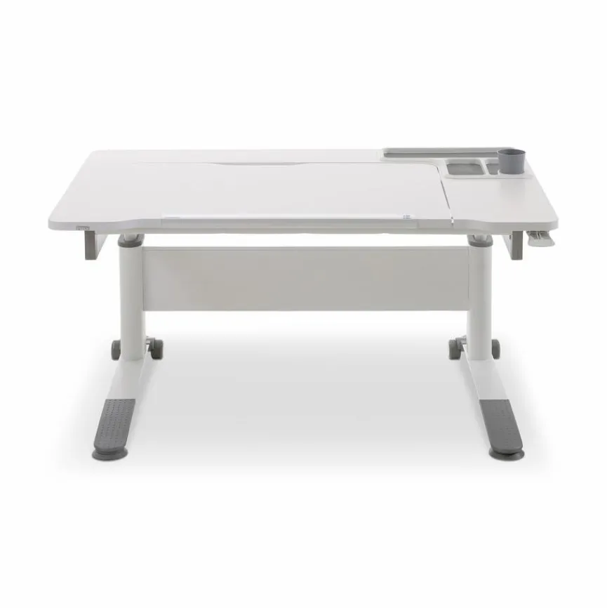 - Tischplatte geteilt, inkl. Stiftebecher und dreiteiliger Utensilienschale,