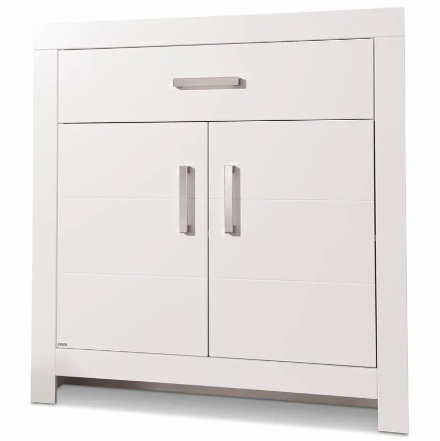 - Mit 1 Schubkasten, 2 Türen und 1 Einlegeboden, Griffe in chrom matt