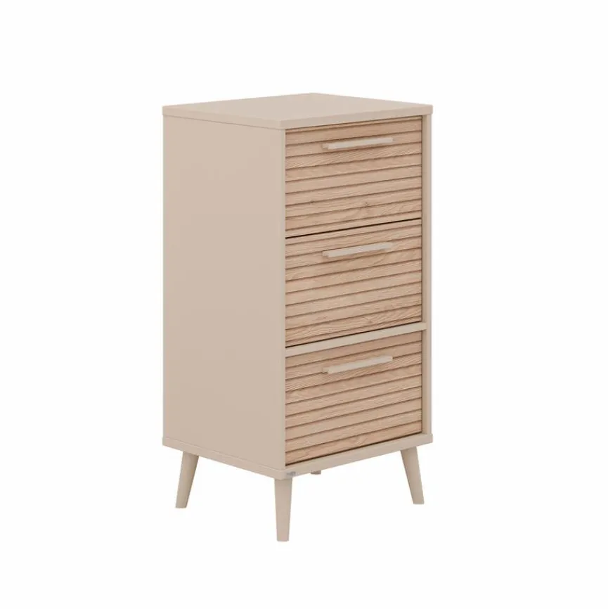 Die hochwertig gearbeitete Kommode Eefje der Marke Paidi ist speziell für Baby- oder Kinderzimmer konzipiert, kann aber auch in anderen Bereichen als praktisches Stauraum-Möbel zum Einsatz kommen. Drei Schubkästen mit einer Belastbarkeit von jeweils bis zu 15 kg stehen zur Verfügung, um Textilien oder andere Dinge unterzubringen. In optischer Hinsicht erfreut der natürlich wirkende, puristische Scandi-Stil der Kommode Eefje.