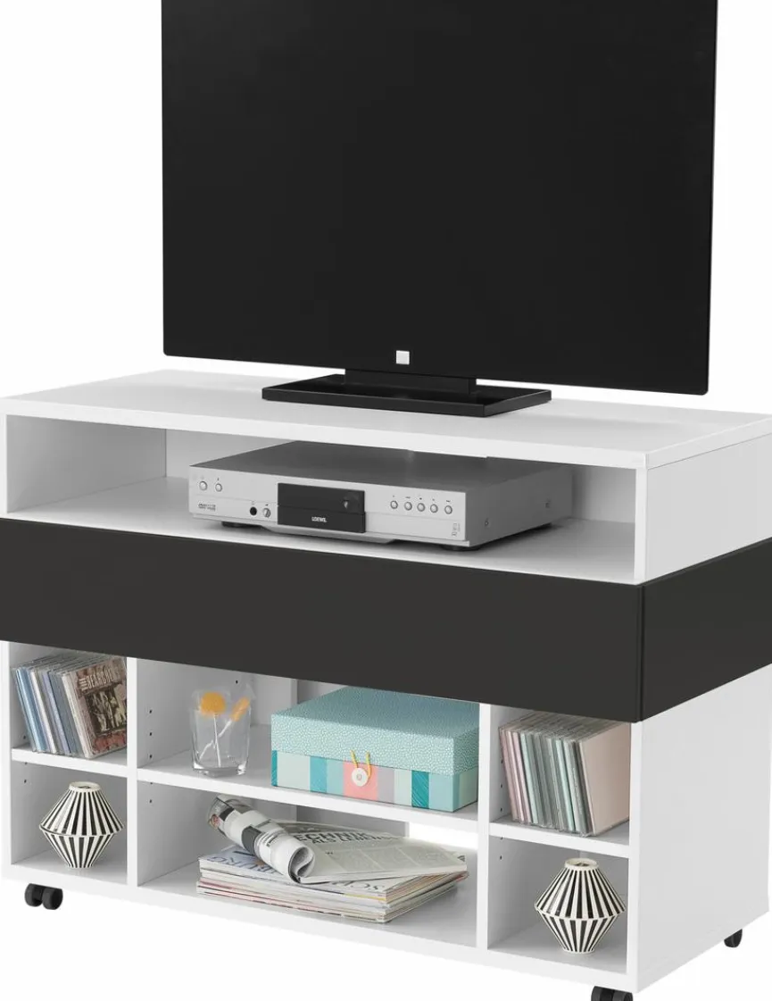 Für das Fernsehgerät, Receiver und Zubehör bietet Ihnen das Medienelement Clip aus dem Hause Röhr sehr viel Platz. Die geradlinigen Formen und die farblichen Absetzungen verleihen diesem TV-Lowboard eine ausgesprochen trendige Optik. Daher eignet sich das Medienelement Clip ideal für den modernen Wohnstil.