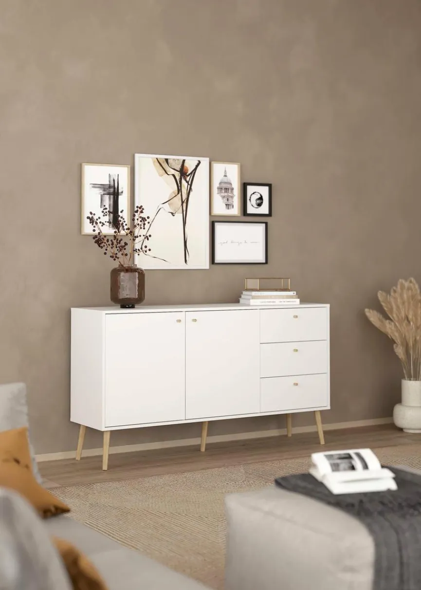 Mit zwei Türen und drei Schubladen bietet Ihnen das Sideboard Bodo aus dem Hause Tvilum reichlich Platz, um Gegenstände unterschiedlichster Art ordentlich sortiert unterzubringen. Doch diese Kommode ist nicht nur ungemein praktisch, sie ist auch eine optische Bereicherung für Wohneinrichtungen unterschiedlichster Art. Mit ihrem formschönen, cleanen Look harmoniert das Sideboard Bodo mit zahlreichen Einrichtungsstilen.
