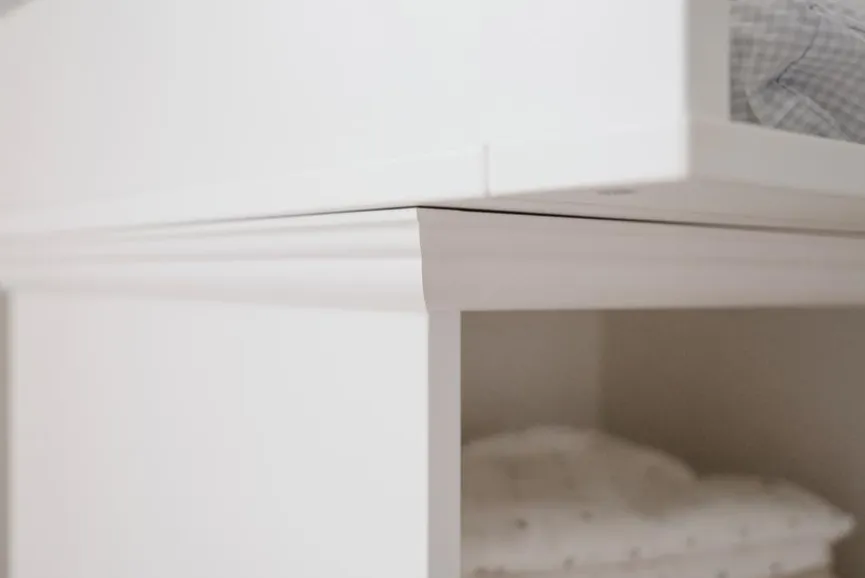 - Aus Holzwerkstoff (Spanplatte) mit kratzfester Melaminharzfolie in weiß