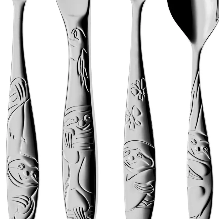 Mit dem Kinderbesteck Faultier 4tlg. aus dem Hause WMF werden Ihrem kleinen Liebling Gemüse und Co. noch besser schmecken als bisher. Das Besteck für Kinder glänzt mit einem süßen Tiermotiv auf den Griffen der einzelnen Bestandteile und vermittelt so Spaß beim Benutzen. Zudem punktet das Kinderbesteck Faultier 4tlg. von WMF durch seine kindgerechte ergonomische Formgebung und Größe.