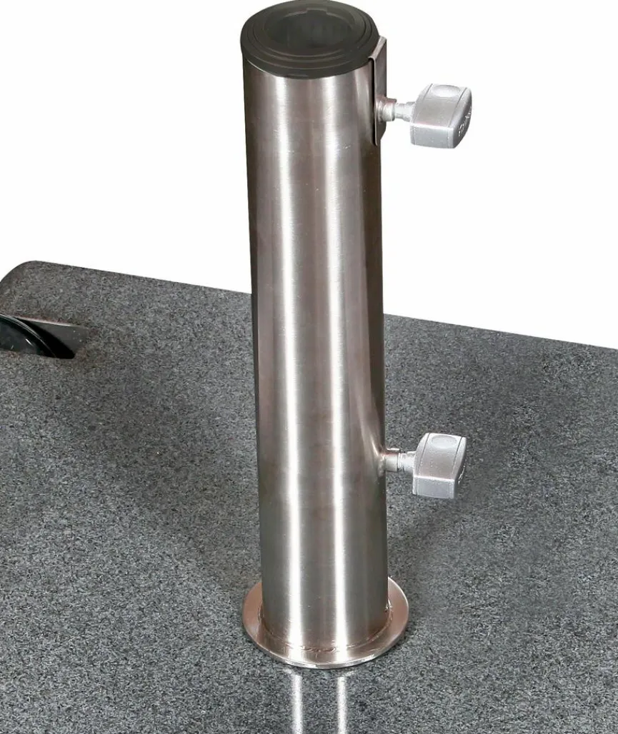 Der Knirps Sonnenschirmständer Granit 50 kg bietet Ihnen eine durchdachte Funktionalität. Dank des herausziehbaren Griffs und der beiden Rollen lässt sich dieser Ständer einfach an Ort und Stelle bringen. Glänzend polierter Granit macht den Sonnenschirmständer Granit 50 kg von Knirps zudem auch optisch sehr reizvoll.
