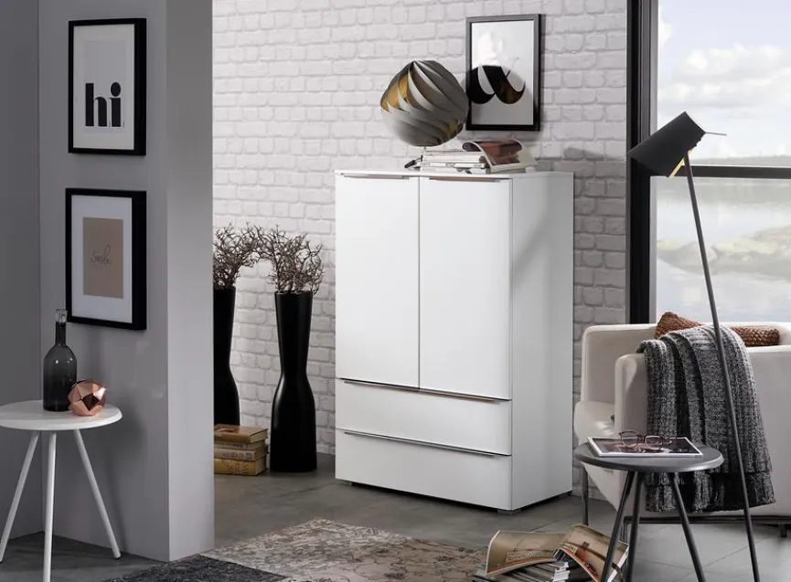 Bei der Kommode Aldono der Marke Rauch Orange treffen ein elegantes Design und eine hochwertige Verarbeitung zusammen. Bestimmt wird die Optik durch die schnörkellose Formgebung und die unifarbene Lackierung. In mehreren Fächern bietet Ihnen die Kommode Aldono von Rauch Orange praktischen Stauraum und sorgt für Ordnung.