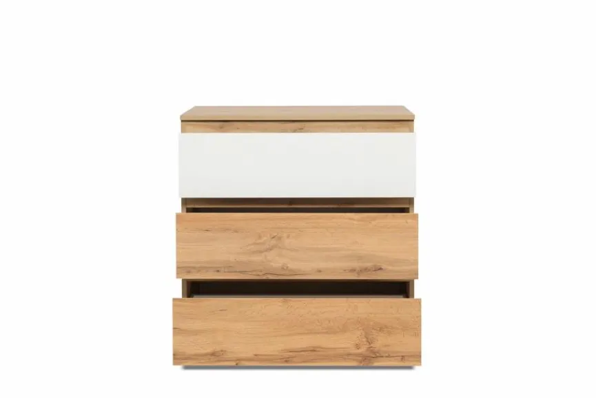 Die Kommode Image präsentiert sich in einem ansprechenden Design im modernen Stil. Durch eine kontrastfarbige Schublade wird die Naturholzoptik gekonnt durchbrochen. Zusammen mit der geschmackvollen Formensprache sorgt das für ein attraktives Äußeres. Im Inneren bietet die Kommode Image in verschiedenen Schüben viel praktischen Stauraum.