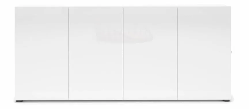 Mit ihrem schlichten und minimalistischen Stil trägt die Kommode Mister zu einem zeitgemäßen Raumdesign bei. Zudem bietet das Sideboard hinter den vier Türen reichlich Platz zum Verstauen von Geschirr oder Wohntextilien. Sie können die vorhandenen Fachböden der Kommode Mister nicht zuletzt bequem in der Höhe verstellen.