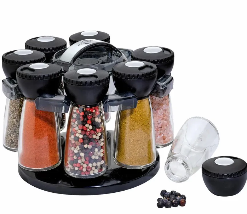 Mit dem Gewürzkarussell Ø 20 cm haben Sie alles griffbereit, was Sie zum Würzen Ihrer Lieblingsgerichte benötigen. Im Handumdrehen entnehmen Sie die perfekte Dosis bereits gemahlenen Pfeffers, Kurkuma- oder Paprikapulvers. Bewahren Sie in den Gläschen in Ihrem Gewürzkarussell Ø 20 cm zur weiteren Verarbeitung beispielsweise auch Pfefferkörner, Knoblauchflocken oder Kristallsalz auf.