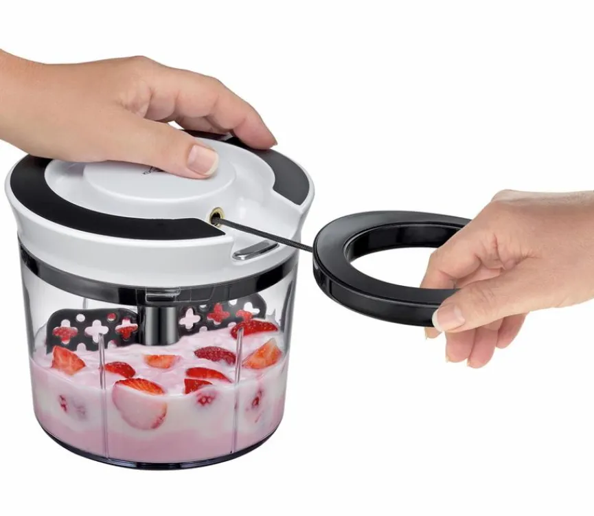Wenn beim Kochen alles schnell von der Hand gehen soll, dann ist der Multischneider Turbo von Küchenprofi Ihr genialer Helfer. Frische Zutaten wie Gemüse, Obst und Kräuter schnippelt er schnell, sicher und sauber klein. Auch mit dem Hacken von Nüssen und dem Zerkleinern von Käse oder gegartem Fleisch kommt der Multischneider Turbo bestens klar.