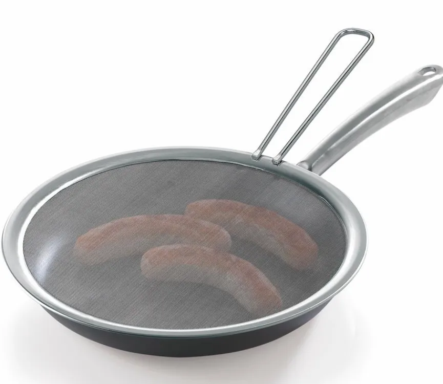 Das Spritzschutzsieb Ø 29 cm ist ein nützlicher Helfer beim Braten, wenn Sie Fettspritzer auf Ihrem Cerankochfeld vermeiden wollen. Seine praktische Größe deckt so gut wie jede in einer privaten Küche übliche Pfanne ab. Mit dem Spritzschutzsieb Ø 29 cm ersparen Sie sich viel Putzarbeit in Ihrer Küche. Dank der stabilen Machart lässt der schöne Küchenhelfer zudem eine lange Lebensdauer erwarten.