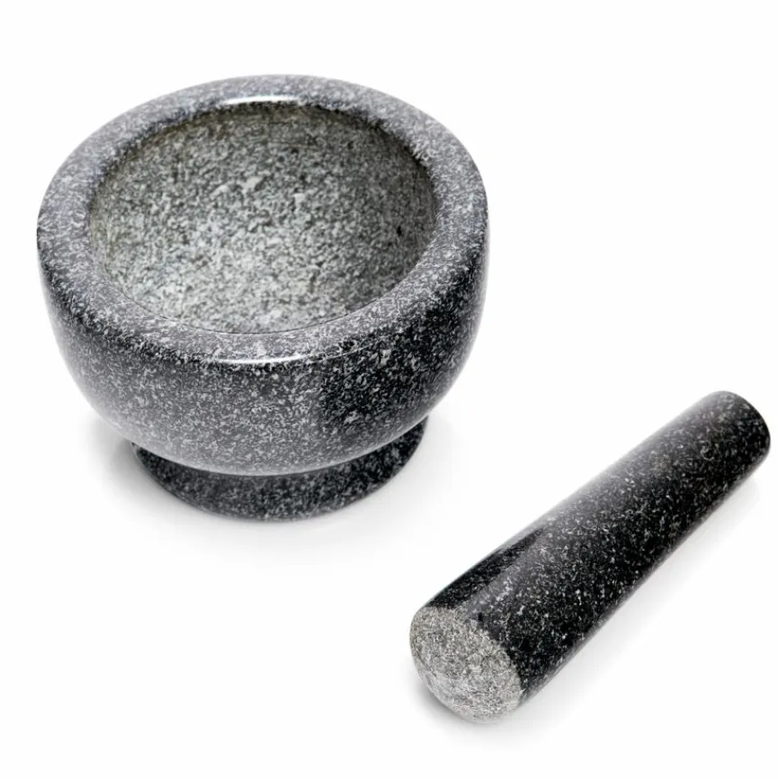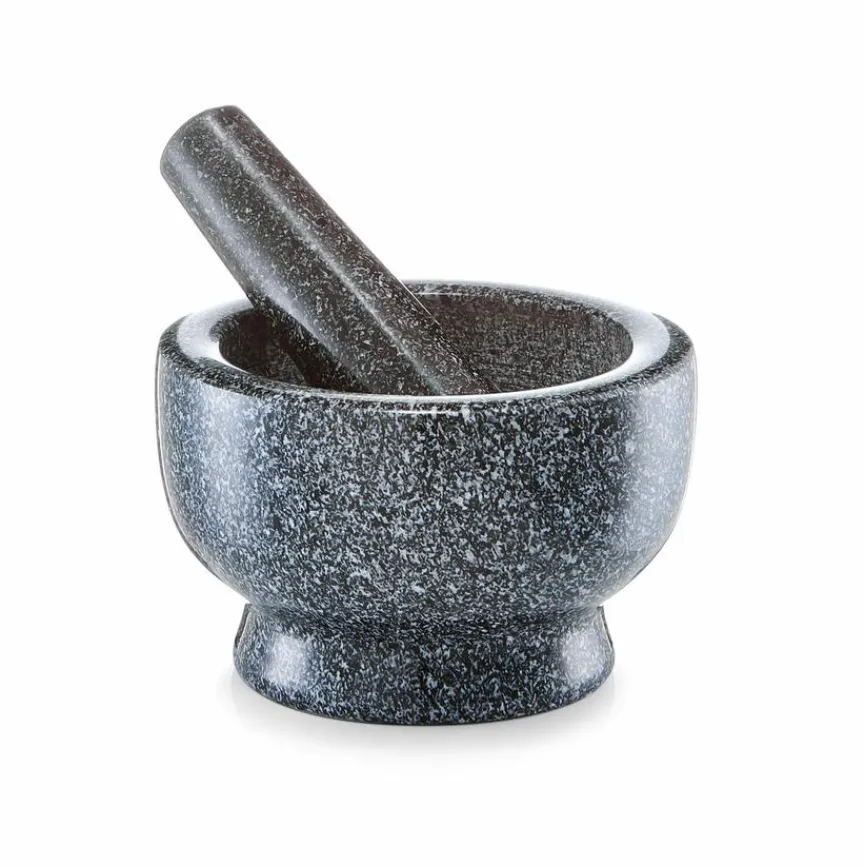 Der aus Naturstein gefertigte Mörser 2tlg. eignet sich hervorragend zum Zermahlen von frischen Kräutern oder Gewürzen, deren Aromen sich dank dieser traditionellen Zubereitungsweise optimal entfalten. Mithilfe des praktischen Utensils können Sie die verschiedenen Zutaten beispielsweise zu einem feinen Pulver verarbeiten, grob zerstoßen oder zu Mus zerreiben. Der Mörser 2tlg. wird auch für Zutaten verwendet, die zu weich für eine Gewürzmühle sind.