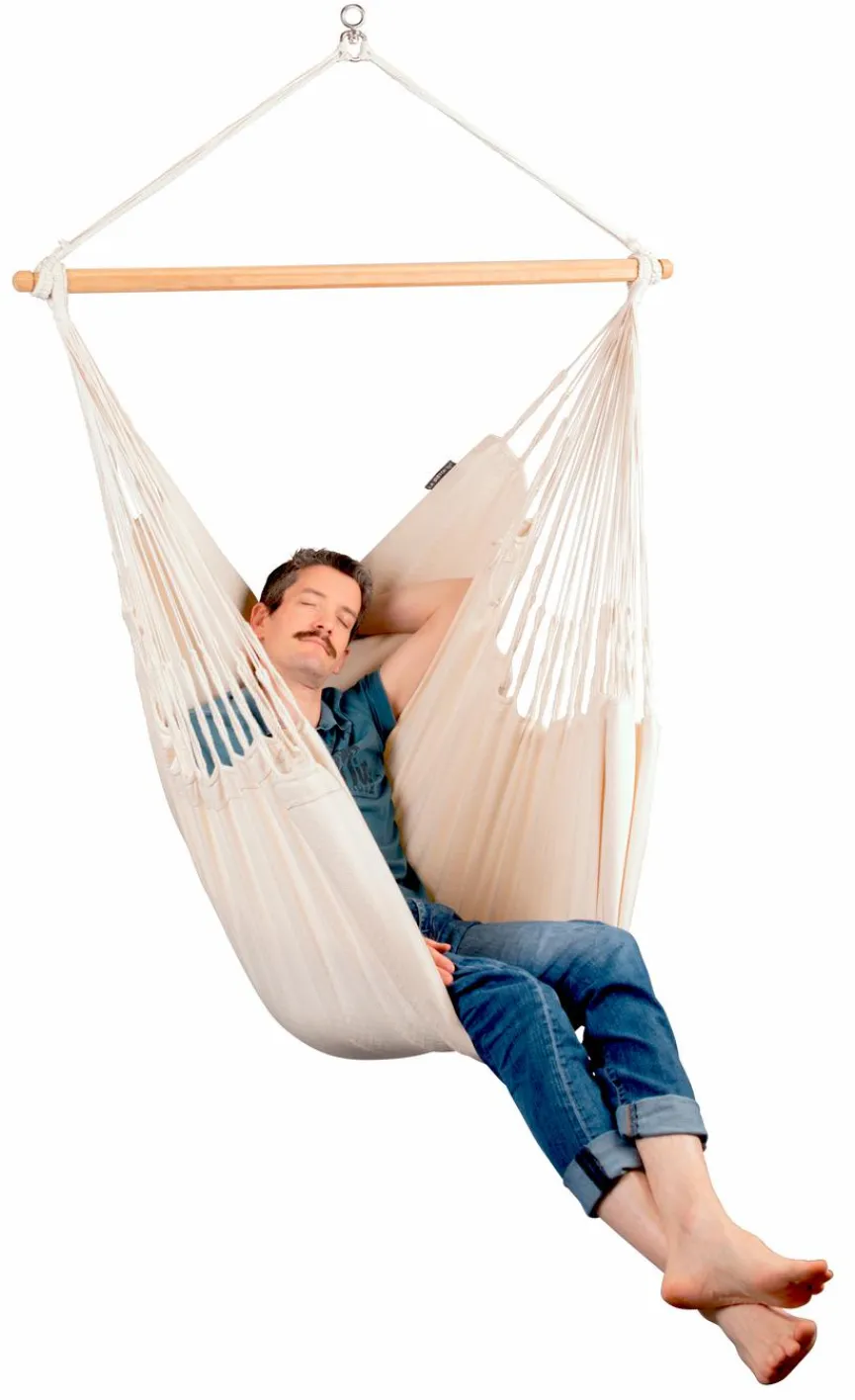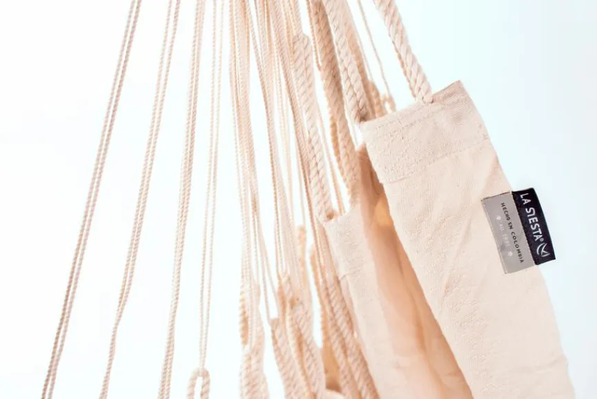- Stoffteil des Hängesessels ist abnehmbar und bei 30° waschbar, Aufhängeschnürre sollten vor dem Waschen zusammen gebunden werden