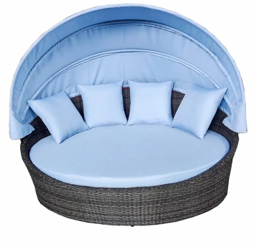 Mit der Sonneninsel Fiesta sichern Sie sich ein traumhaftes Möbelstück für Ihren Garten. Die kreisrunde Liegefläche lädt zum Entspannen ein, wobei das Dach für wunderbaren Schatten sorgt. Darüber hinaus begeistert die Sonneninsel Fiesta mit ihrem zeitlos schönen Design, das sich in jede Umgebung einfügt.