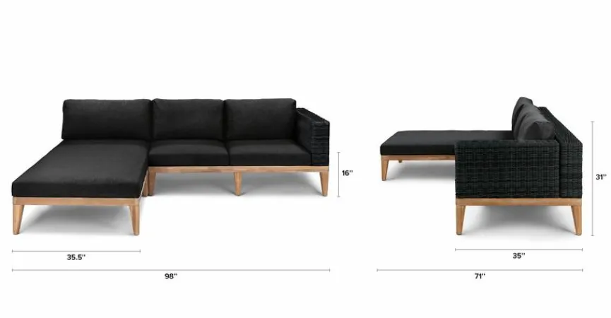 - Set besteht aus 2-Sitzer Sofa mit Armlehne rechts, Recamiere und Couchtisch