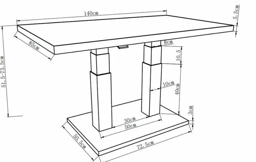 - Tisch ist höhenverstellbar von 49-72 cm