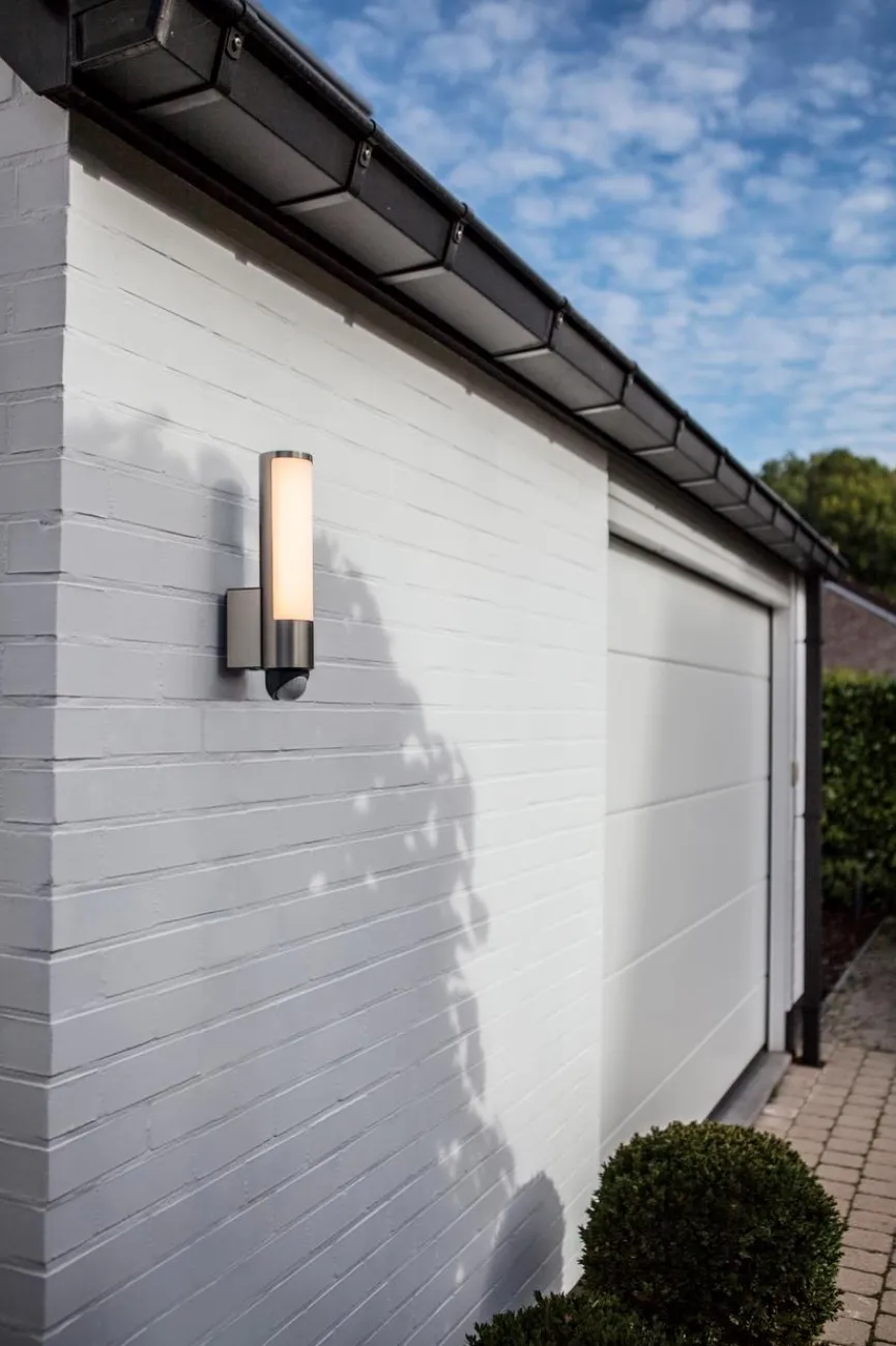 - MIt Bewegunsmelder an der Leuchte (Erfassungswinkel: 180°, Reichweite: 18 m)