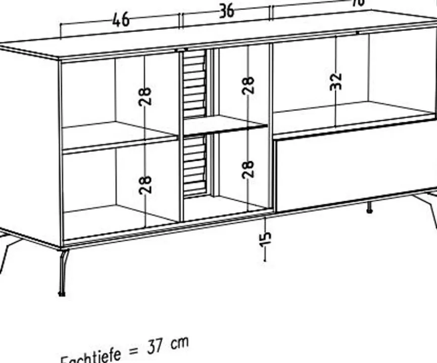 - Mit 1 Tür, 1 Glastür, 1 Klappe und 1 Schubkasten mit Selbsteinzug