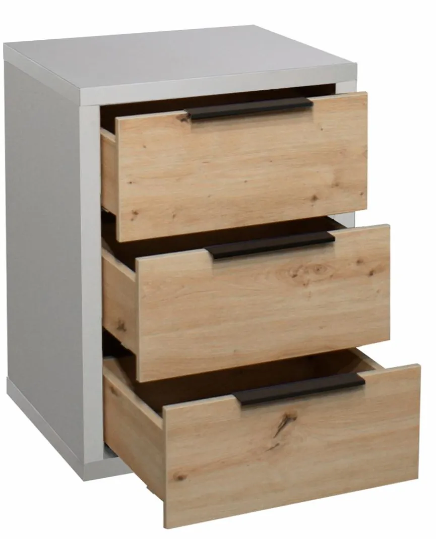 Mit der Nachtkommode Clyde von Mäusbacher erwerben Sie ein modern designtes Möbelstück, das sich durch eine dezent gewählte Optik kinderleicht kombinieren lässt. Drei Schubladen sorgen für ausreichend Stauraum im Nachttisch, und auf der Ablagefläche können Leuchtmittel oder Bilderrahmen platziert werden. Die Nachtkommode Clyde von Mäusbacher ist außerdem mit Selbsteinzügen ausgestattet, sodass ein geräuscharmes Auf- und Zuziehen gewährleistet ist.