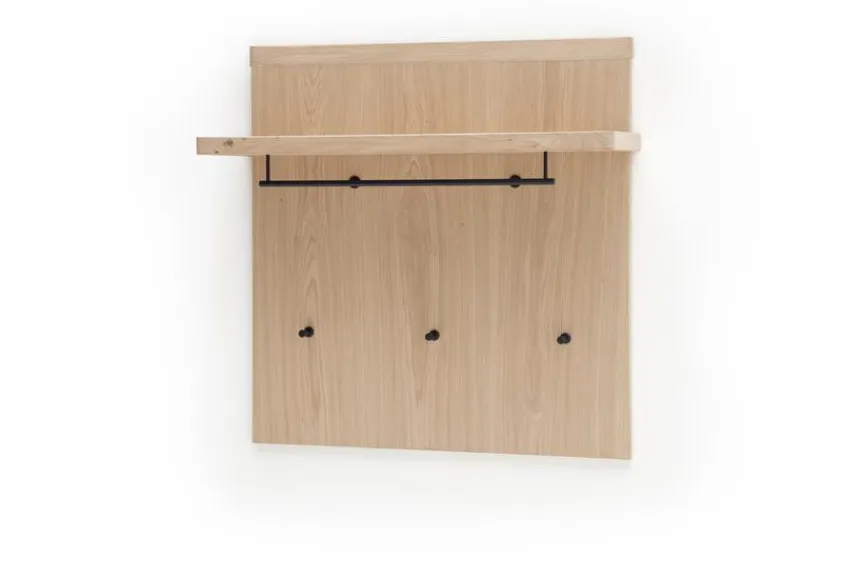 Das Garderobenpaneel Barcelona der Marke MCA nimmt in Ihrer Diele nur wenig Raum ein. Die Holzoptik der fast quadratischen Front des Dielenpaneels ist kombiniert mit einer schlichten Kleiderstange und drei Haken in dunkler Farbe. Zusätzlich zu den Hängemöglichkeiten am Garderobenpaneel Barcelona von MCA bietet ein Ablageboden Platz für einige Kleinteile.