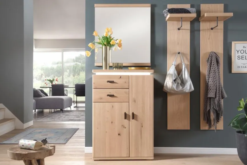 Mit dem Garderobenpaneel Barcelona von MCA setzen Sie im Flur oder Eingangsbereich einen rustikalen Akzent. Dazu begeistert das Dielenpaneel mit Funktionalität. Hängen Sie an dem Garderobenpaneel Barcelona der Marke MCA ganz entspannt Ihre Jacke auf und nutzen Sie die zusätzliche Ablage für diverse Accessoires und Dekoratives.