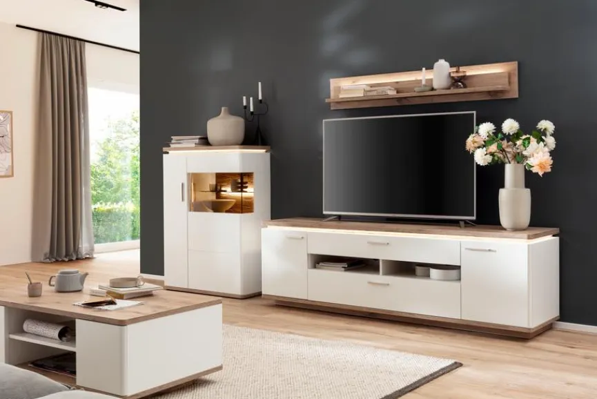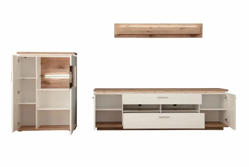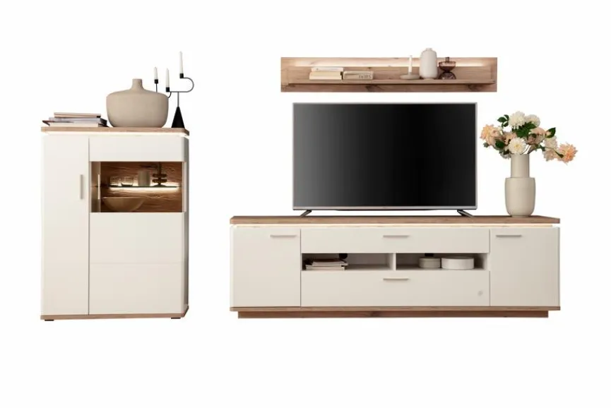 - Bestehend aus Highboard, TV-Lowboard und Wandboard