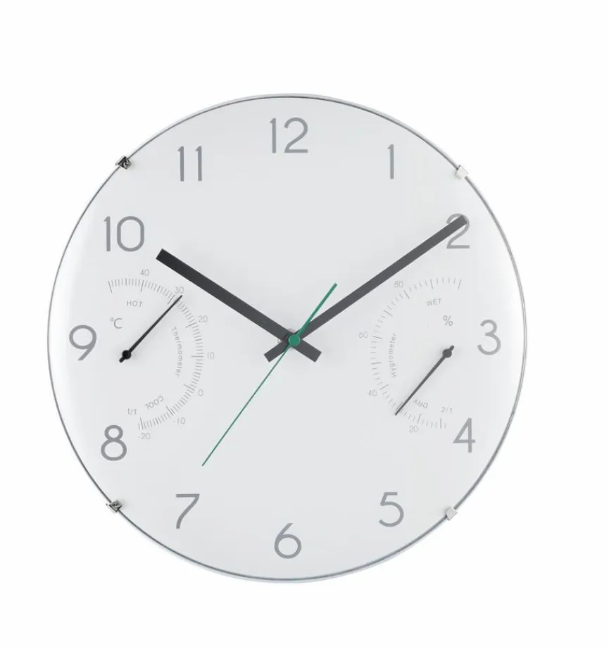 Da die Quarzwanduhr 16106 des Herstellers Mebus über große Ziffernblätter und gut lesbare Ziffern verfügt, sind Sie über die aktuelle Uhrzeit mit einem Blick jederzeit auf dem Laufenden. Darüber hinaus informiert Sie die Uhr von Mebus über das Raumklima. An der Quarzwanduhr 16106 können Sie nämlich auch die Raumtemperatur und die Luftfeuchtigkeit ablesen.