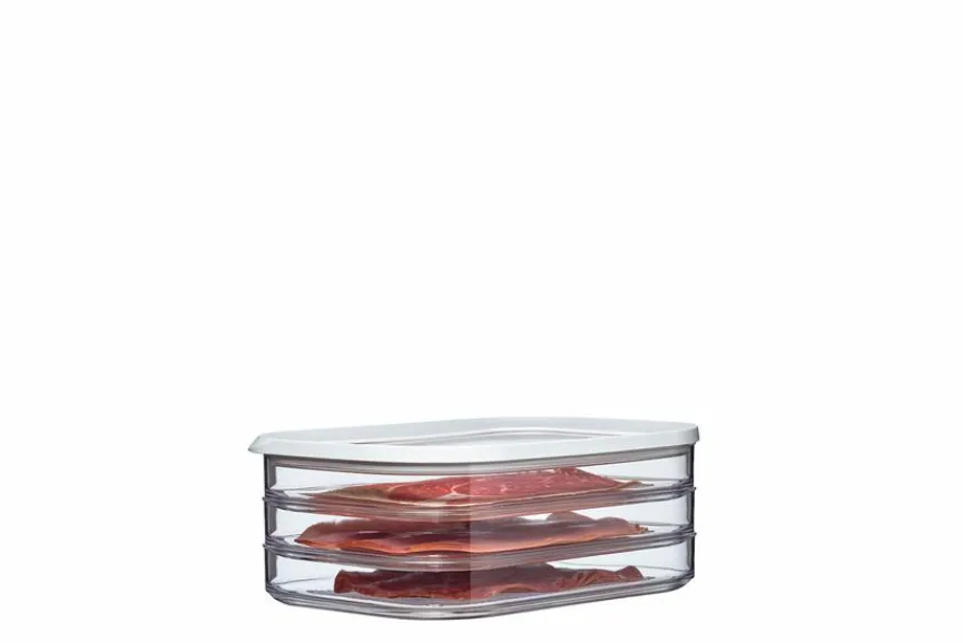 Wenn Sie Wurst und Käse in Form von Aufschnitt hygienisch und platzsparend aufbewahren möchten, ist die praktische, transparente Vorratsdose Modula 3tlg. genau das Richtige für Sie. Aufgrund seines ansprechenden Designs lässt sich das hochwertige Behältnis auch zum Servieren nutzen. Ein Blickfenster im Deckel sorgt dafür, dass Sie den Inhalt der spülmaschinenfesten Vorratsdose Modula 3tlg. auf einen Blick erkennen.