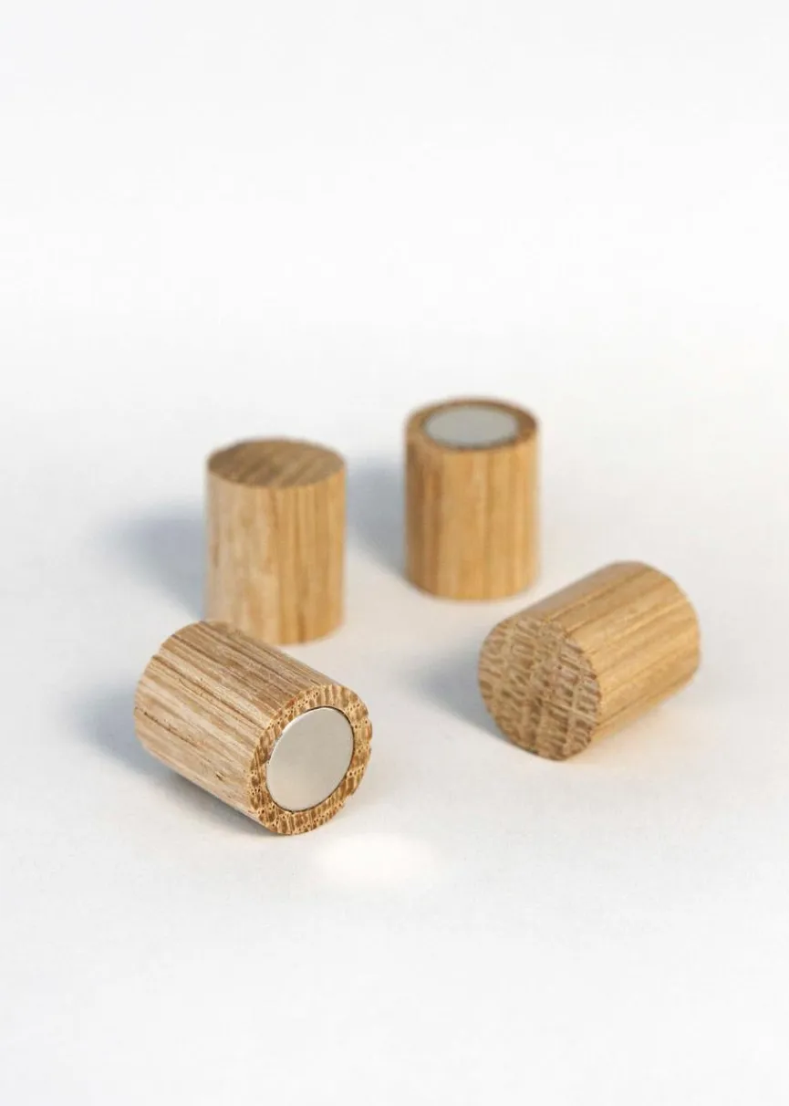 Das Magnete Holz 4er-Set Ela von Metallbude bringt natürliche Eleganz in Ihr Zuhause und eignet sich ideal für Pinnwände, Kühlschränke oder andere magnetische Oberflächen. Dank ihrer starken Haftkraft bietet das Magnete Holz 4er-Set Ela vielseitige Einsatzmöglichkeiten, ohne Ihre Einrichtung zu stören. Egal, ob Sie Notizen, Fotos, Einkaufslisten oder wichtige Erinnerungen befestigen möchten, die Holzmagnete sind die optimale Lösung.