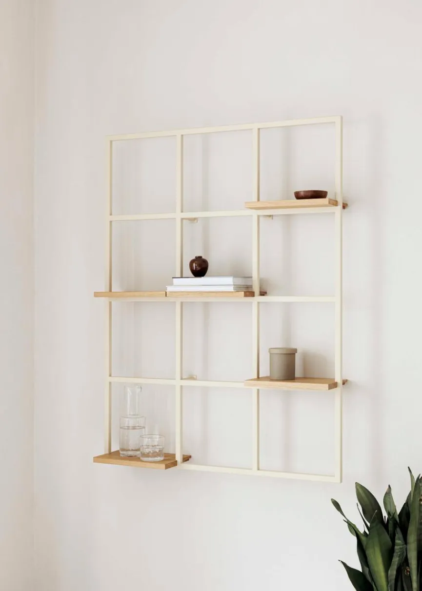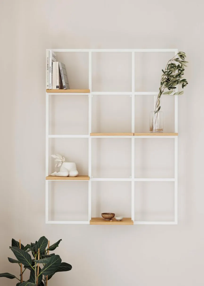 Die Ablage aus hochwertigem Holz wurde speziell für das Wandregal RIVO bzw. RIVO S hergestellt, sodass die Ablagen anhand eines einfachen Stecksystems auf das Metallgestell gesteckt und anschließend mit einer kleinen, im Ergebnis unsichtbaren, Madenschraube fixiert werden.