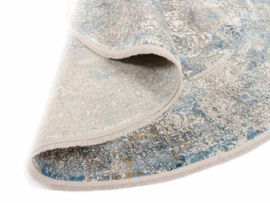 Mit seinen fernöstlichen Ornamenten im Used-Look bringt der Webteppich Farina Ø 240 cm dezentes morgenländisches Flair ins Ambiente. Durch seinen Materialmix hat er einen leichten Schimmer, was sehr stilvoll wirkt. Der Webteppich Farina Ø 240 cm sieht in jedem Wohndesign von puristisch über klassisch bis ländlich hinreißend aus. Außerdem fühlt sich sein Gewebe beim Begehen angenehm weich an.