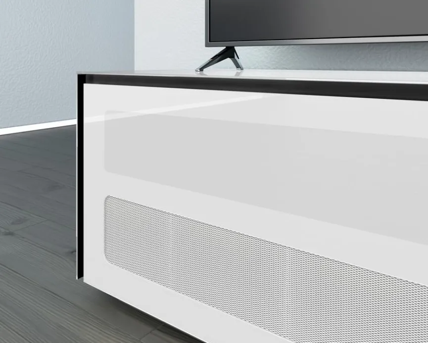 Bei diesem TV-Lowboard treffen eine elegante Optik und eine hohe Funktionalität zusammen. Mit dem gelungenen Zusammenspiel aus Glas, Edelstahl und Keramik erhält der TV-Unterschrank ein modernes Äußeres. Darüber hinaus bietet das TV-Lowboard viel praktischen Platz für die Aufbewahrung von DVD-Playern, Fernbedienungen und anderen Gegenständen.