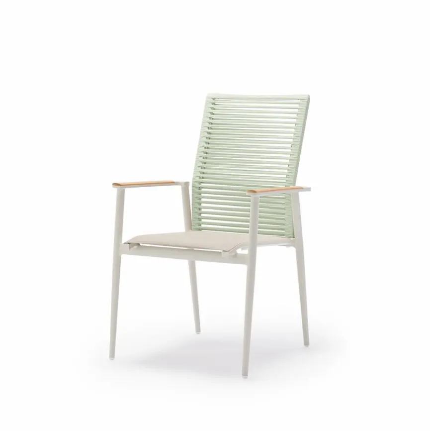 Der Gartensessel Kopenhagen von Musterring lädt zum geselligen Beisammensein, Genießen und Erholen an der frischen Luft ein. Ein Rücken mit Kordelbespannung und Armlehnauflagen in Teak verleihen dem Gartenstuhl eine charmante Ästhetik. Kombinieren Sie den Gartensessel Kopenhagen mit einem Terrassentisch mit einem minimalistisch gezeichneten Gestell und gemütlich wirkender Holzplatte!