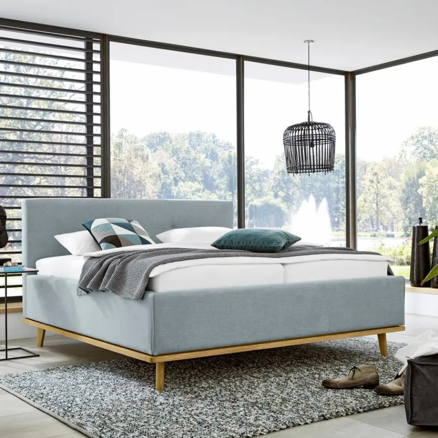 Das Polsterbett Delphi 180×200 cm aus dem Hause Musterring steht für modernen Chic, freundlichen Charme sowie für eine durchdachte Funktionalität. Ein Kopfteil im Steppdesign, schnörkellose Formen und wohnliche Holzakzente prägen hier das Erscheinungsbild. Für zusätzlichen Stauraum sorgt beim Polsterbett Delphi 180×200 cm ein belüfteter Bettkasten.