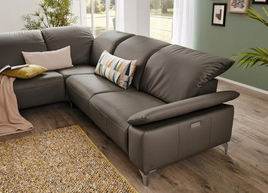 - Inkl. 4 manuelle Kopfteilverstellungen, 1 Armteilverstellung und 1 vollmotorische (motorische Verstellung von Fuß-, Rücken- und Kopfteil) Relaxfunktion im 1,5-Sitzer mit Armlehne