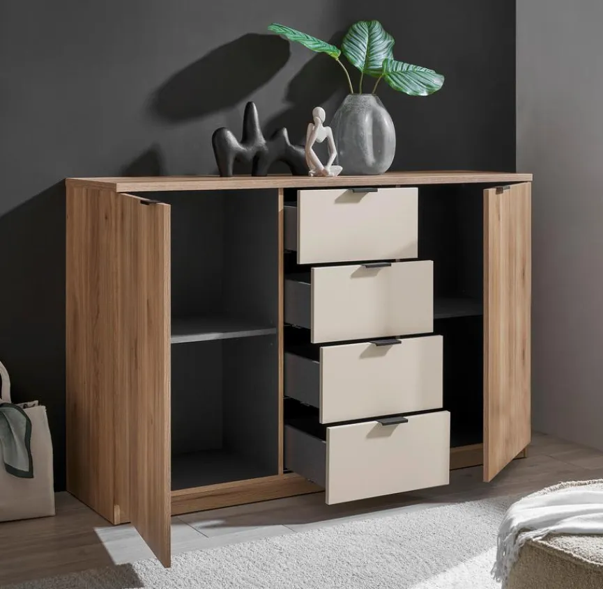 Die Kommode Danao vereint modernes Design mit praktischer Funktionalität. Sie bietet viel Stauraum für Kleidung, Accessoires oder Wohnutensilien. Mit ihrem klaren, zeitlosen Look passt die Kommode perfekt in jedes Wohn- oder Schlafzimmer. Dank der kompakten Maße eignet sich die Kommode Danao auch ideal für kleinere Räume, ohne dabei an Eleganz zu verlieren.